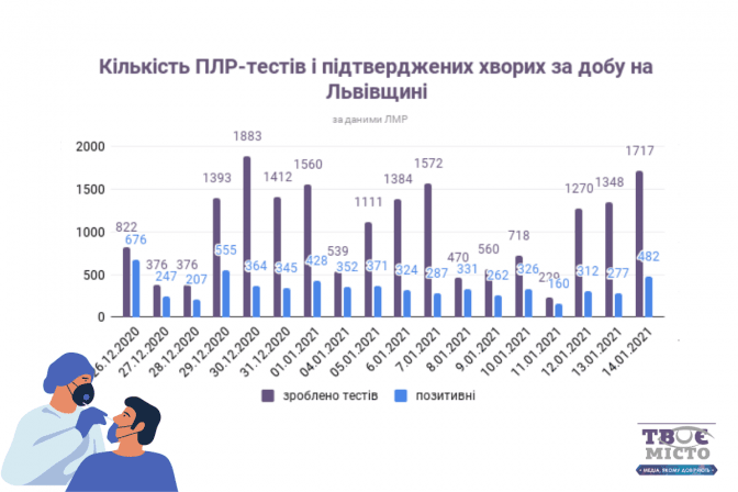 За попередню добу на Львівщині провели 1 717 досліджень на коронавірусну інфекцію, з них 482 виявилися позитивними.