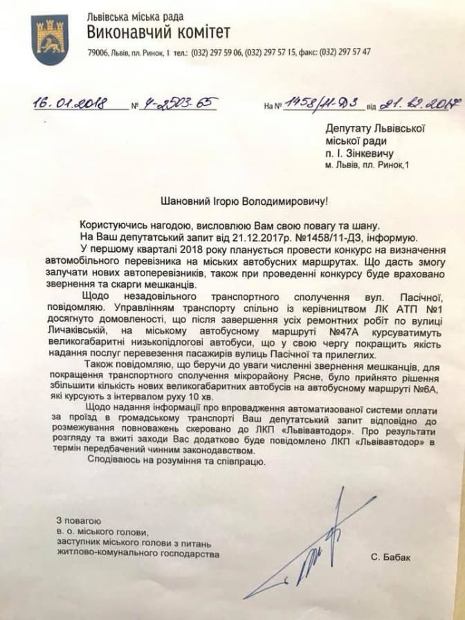Щодо маршруту 47а, то він тимчасово курсує за зміненим маршрутом, у зв’язку із ремонтом вулиці Личаківської, яку закрили для проїзду на початку березня минулого року. Повністю відкрити відремонтовану Личаківську планують до середини 2018-го.