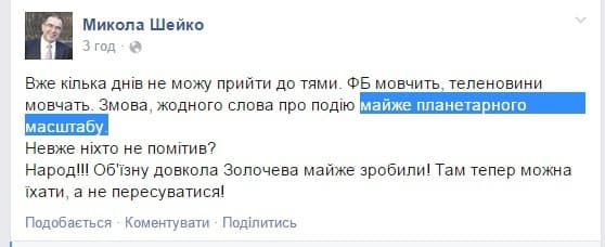 Микола Шейко зазначає, що там тепер можна їхати, а не пересуватися і вважає цю подію "майже планетарного масштабу".