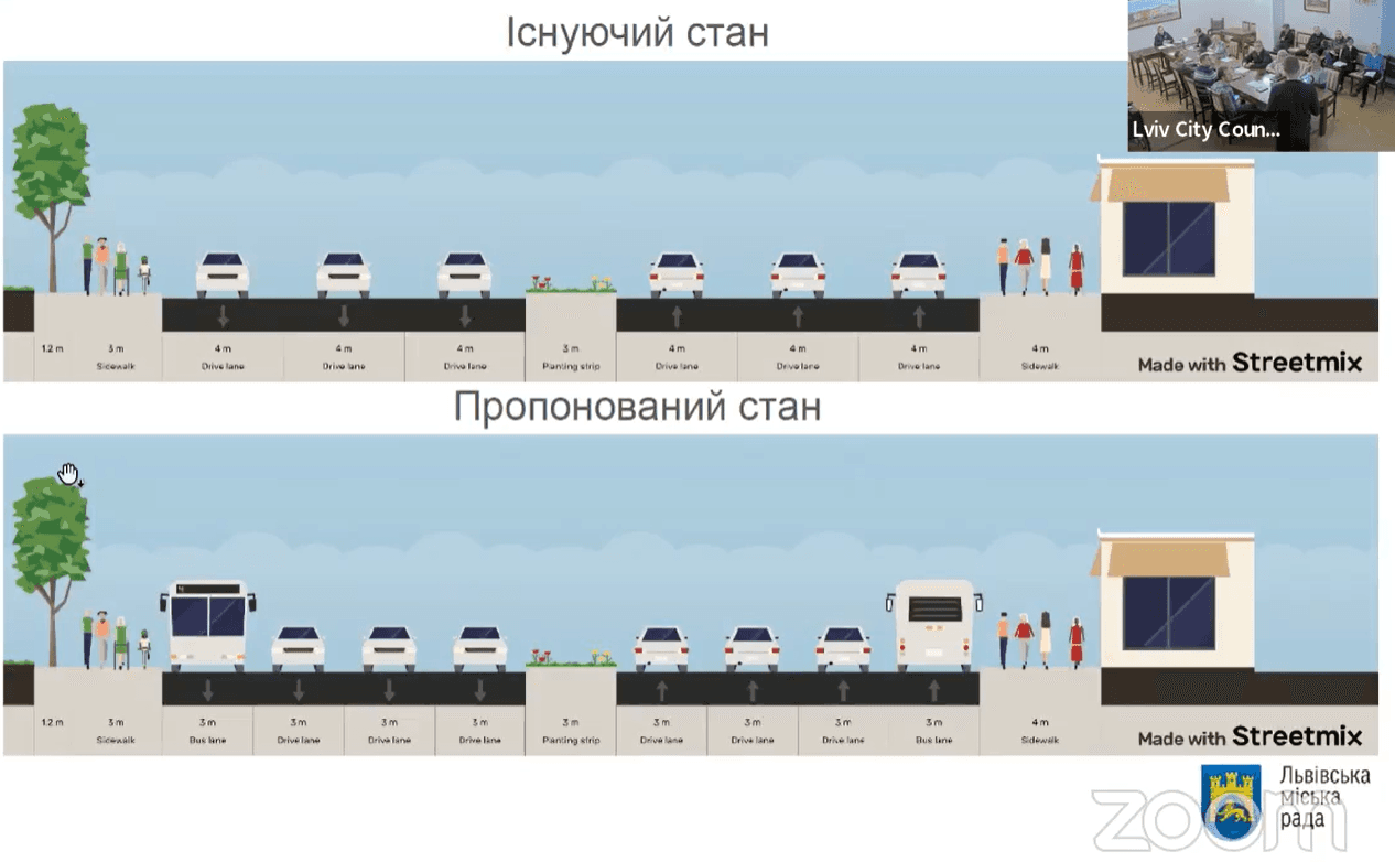 «Ми пропонуємо використати існуючу ширину проїжджої частини. На основному відрізку вул. Стрийської є три смуги, і вони є не нормативної ширини. Тому в межах існуючої ширини з трьох смуг зможемо облаштувати чотири в напрямку як з центру, так і до центру», – сказав він.
