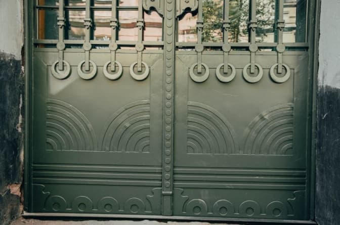 Ця брама вирізняється не лише кольором, а й способом кріпленням всіх елементів, які тримаються лише на заклепках.