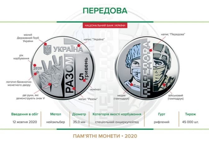 Тираж монет номіналом 5 гривень – 45 тисяч. Їх ввели в обіг з 12 жовтня 2020 року.