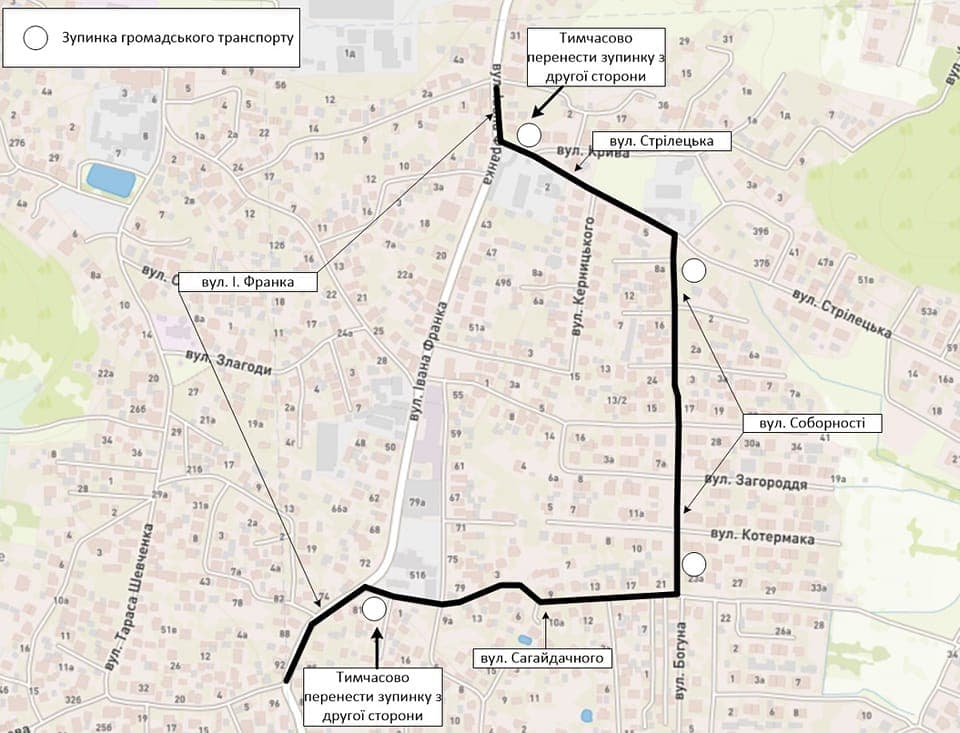 У зв’язку з проведенням будівництва водопроводу по вул І. Франка у Винниках вулицю перекриють на відрізку від вул. Незалежності до вул. Стрілецька.