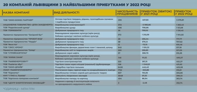 Детальніше із прибутком компаній Львівщини можна ознайомитись у таблиці Tvoemisto.TV