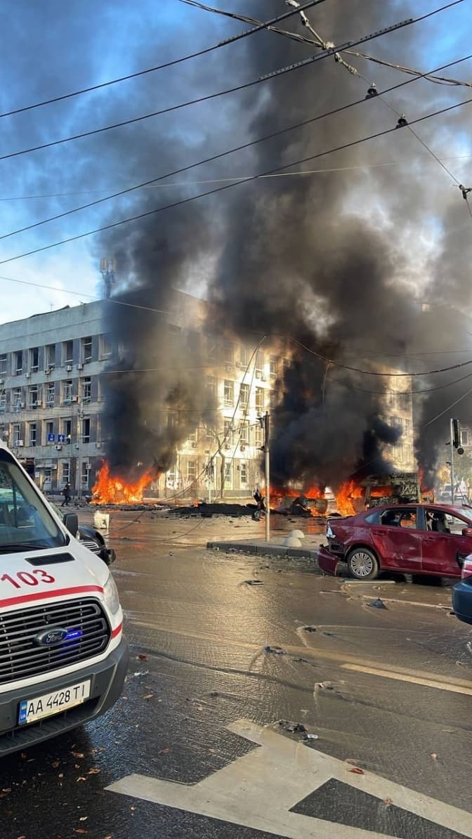 Нагадаємо, вранці 10 жовтня під час масштабної повітряної тривоги у центрі столиці пролунали щонайменше 2 вибухи. Інформацію підтвердив мер Києва Віталій Кличко зазначивши, що вибухи пролунали у Шевченківському та Солом'янському районах. За його словами, є кілька влучань в об‘єкти критичної інфраструктури міста. Центральні вулиці Києва перекрили правоохоронці, працюють рятувальні служби.