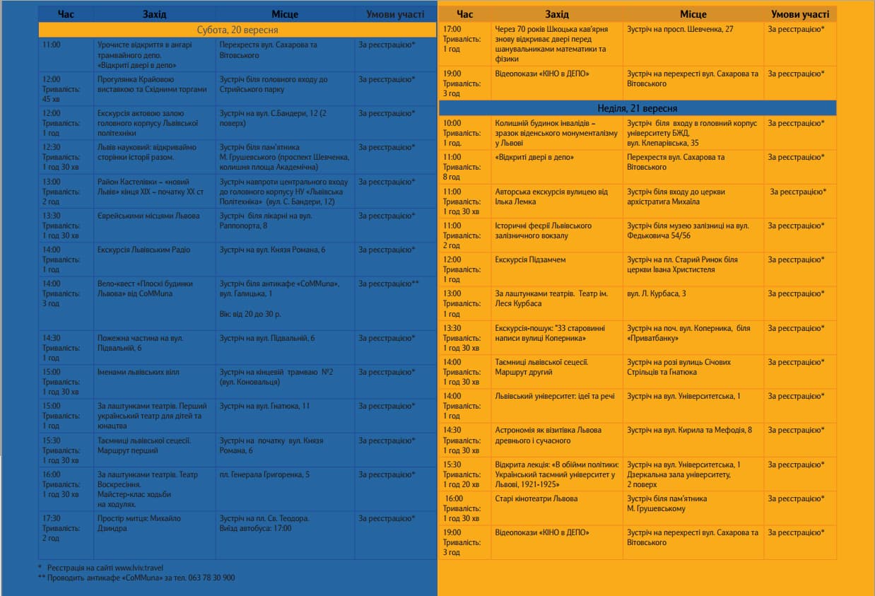 Дні європейської спадщини у Львові триватимуть 20 і 21 вересня. Усі заходи є безкоштовними, але кількість місць на екскурсії обмежена, повідомили у прес-службі Львівської міськради.