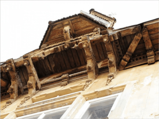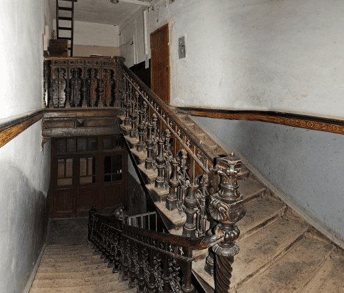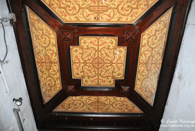 Будинок двоповерховий, всередині й досі збереглися автентичні сходи та перила. Над вхідною брамою вікно оздоблене вітражами, а стеля — кольоровими розписами.
