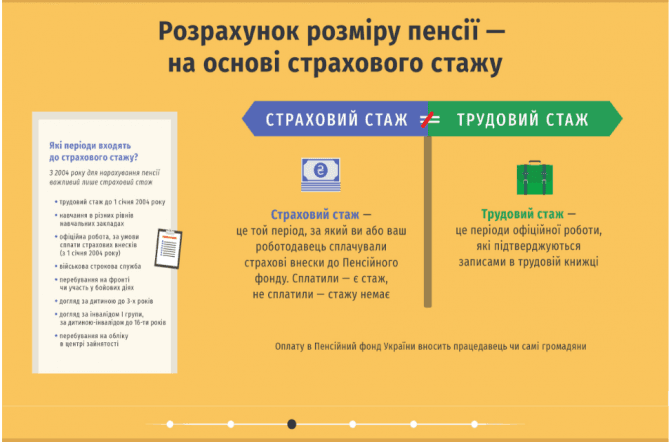 Що таке «пенсійний вік» та «страховий стаж»? Як вони реально вплинуть на вік, коли українець зможе вийти на пенсію? Ці питання, а також формулу розрахунку пенсії роз'яснює інфографіка, підготовлена ГО «Інтерньюз-Україна» в рамках проекту U-Media.