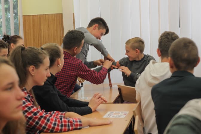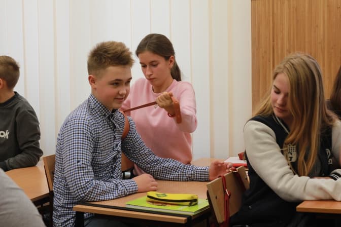 Цього тижня Андрій і Дмитро також розповідали про домедичну допомогу у 69-й школі. Також школярі разом із волонтером Костянтином Ковалишиним готували їсти в польових умовах, із Левом Скопом – малювали святого Юрія Змієборця. Співали історичних пісень з офіцером Національної академії сухопутних військ Тарасом Гривулом, вчилися самозахисту з Сергієм Артемюком та проходили спортивне орієнтування з ветераном війни на Донбасі Віктором Баранником.