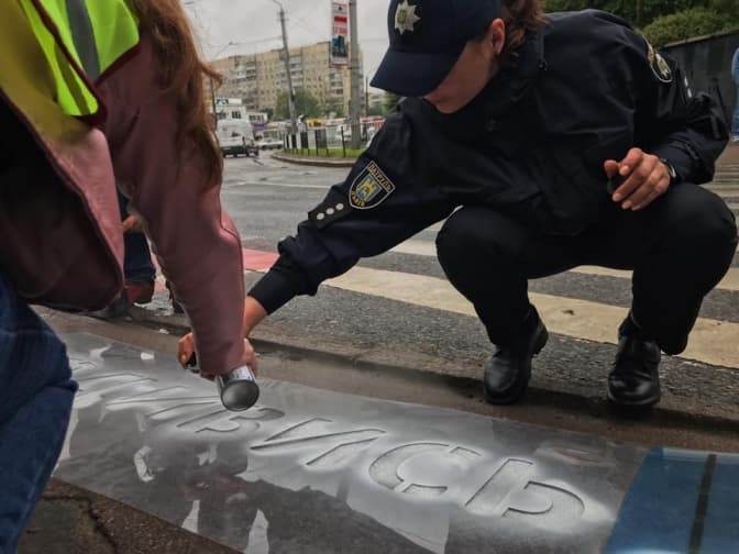 У Львові стартувала акція «Відповідальний пішохід», під час якої патрульні наносять перед пішохідними переходами написи, що закликають звернути увагу на правила дорожнього руху. Про це повідомляють у Патрульній поліції Львівщини.