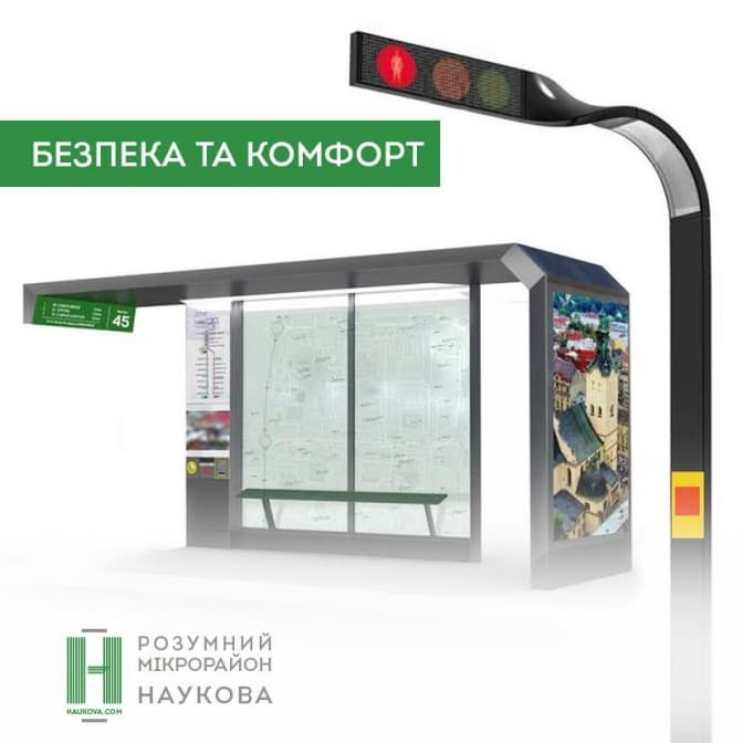 Комфорт. Оновлені зупинки громадського транспорту з картою району та напрямків руху зроблять приємнішим очікування маршрутки, а онлайн-сервіс руху транспорту дозволить дізнатися, скільки часу потрібно очікувати на маршрут. Також у мікрорайоні облаштують датчики для незрячих та спеціальні з’їзди на ліфтах.