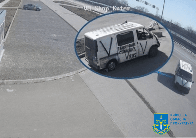 Прокурори у суді довели, що у березні 2022 року п’ятеро військовослужбовців РФ на автомобілі з літерою «V» та надписом «Танковий спецназ RUS» приїхали до підприємства поблизу населеного пункту Мрія Бучанського району Київської області.