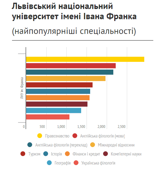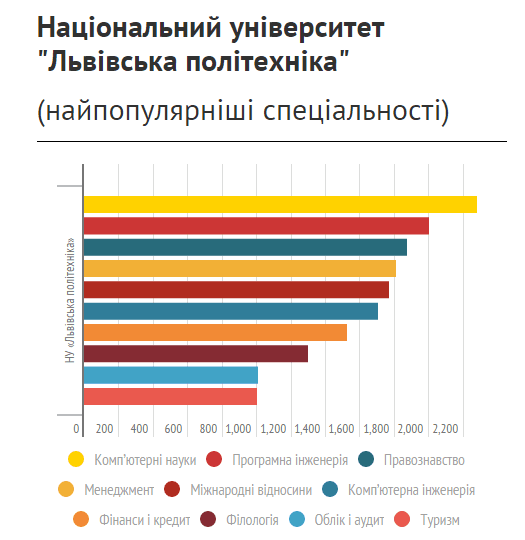 ТОП-10 найпопулярніших спеціальностей у вишах Львова: інфографіка