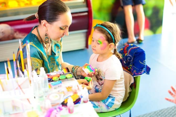 4. Аквагрим (розмальовування обличчя). Така атракція для дитячого свята не потребує великих затрат та зусиль. Можна організувати цей процес навіть вдома: для цього потрібні лише спеціальні фарби та вміння малювати. Готові екскізи можна знайти на різноманітних сайтах або спитати дітей, який образ вони б хотіли.