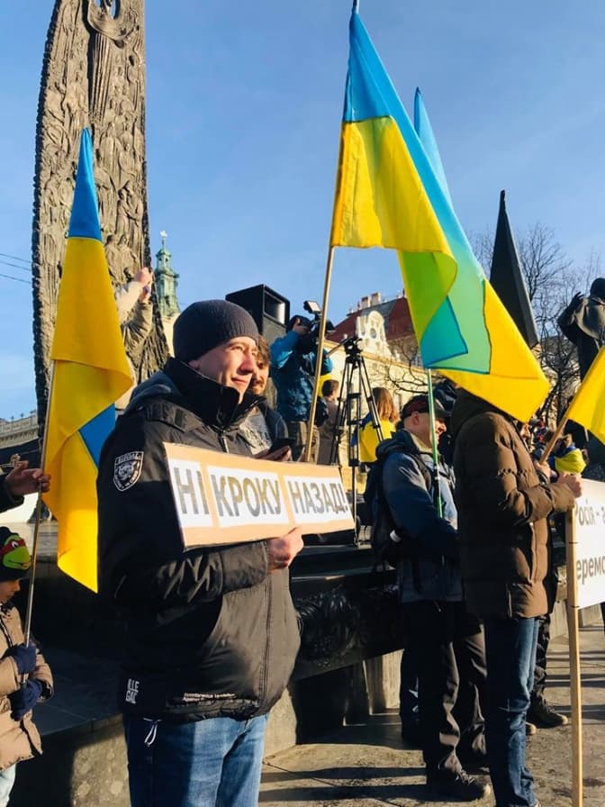 Акцію, на яку прийшло кілька тисяч львів'ян, організували Комітет Майдану Львівщини, Рух опору капітуляції, Студентське братство Львівщини, Громадський рух «Відсіч», Громадський сектор Майдану Львова, ГО «Справа громад», а також львівські осередки партій «Європейська солідарність», УГП та «Демократична сокира».