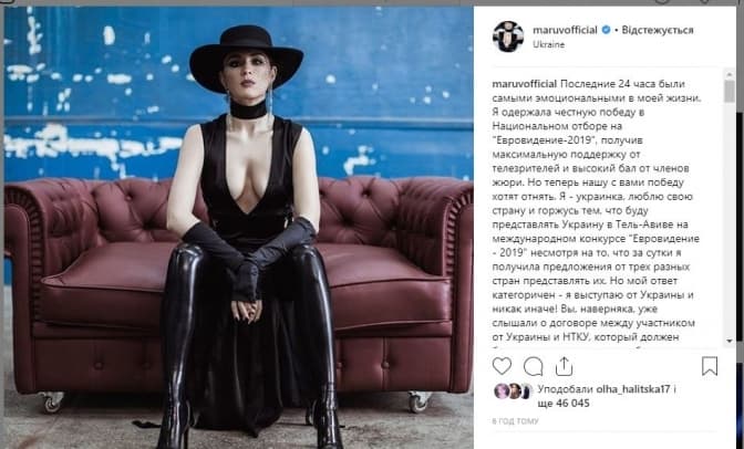 Сьогодні, 25 лютого, Maruv (Анна Корсун – ред.) на своїй сторінці у Instagram написала, що готова відмовитись від гастролей у Росії заради виступу на пісенному конкурсі.