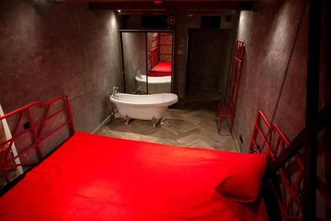 Зазначається, що готельні ліжка у готелі – найбільші у світі і сягають 3-4 м. Вартість проживання – близько 2000-2500 грн. Працюватиме готель цілодобово, вхід – ліворуч від пам’ятника Мазоху.