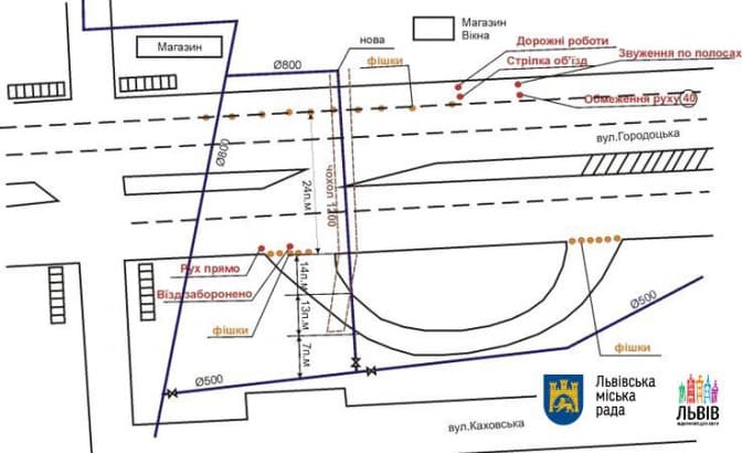 До 30 жовтня включно у Львові буде обмежено рух транспорту на вулиці Городоцькій, 226-228, у зв’язку з проведенням робіт із заміни аварійної ділянки водопроводу.
