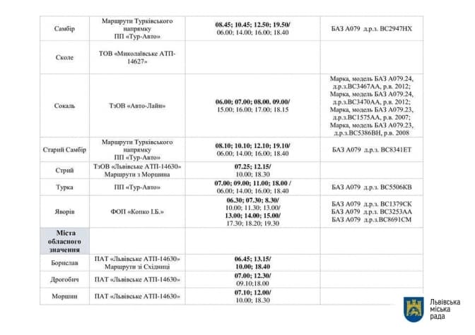 Так, ТзОВ «Міра і К» випустило на маршрути 10 автобусів із 36. Натомість, інші приватні перевізники — ПАТ «Львівське АТП-14630» (0 із 46), ТзОВ «Фіакр Львів» (0 із 42), ТзОВ «Успіх БМ» (0 із 27) — не забезпечили жодної одиниці транспорту.