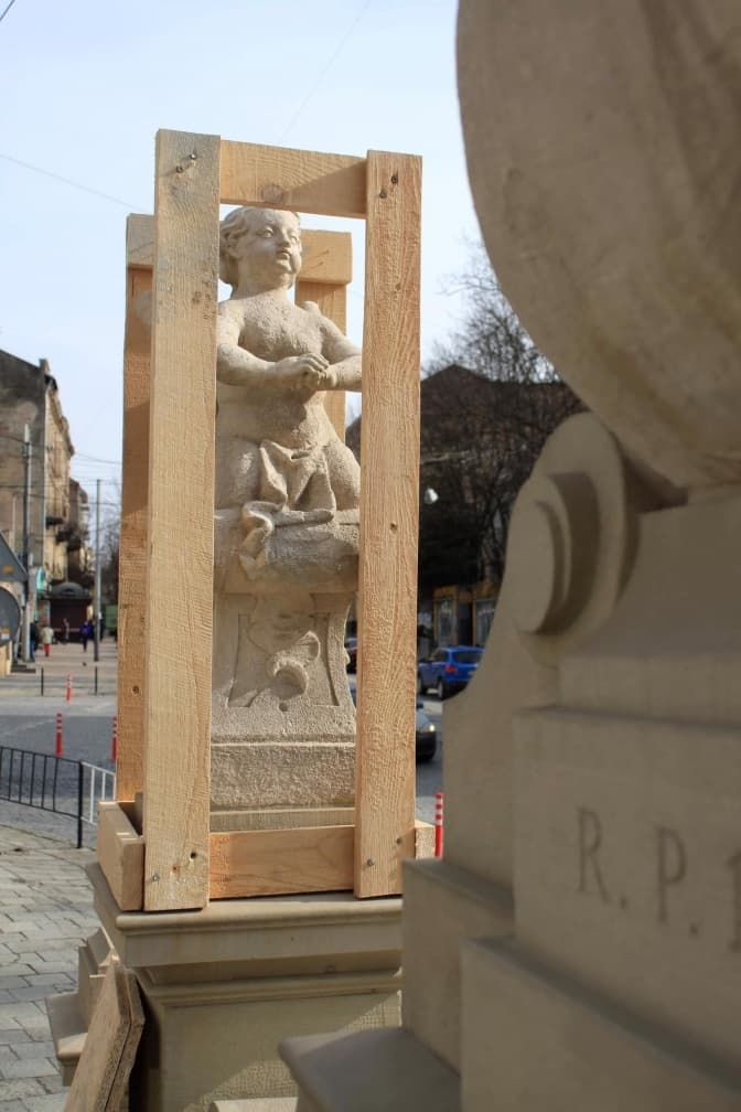 «Захищаємо вітражі, скульптури, всі підряд, які можуть бути під загрозою. На площі Ринок фонтани будемо захищати і скульптури коло Катедри. Ми не тільки на площі Ринок працюємо. Захищаємо по-різному, йдеться не лише про дерев’яні каркаси, а й про демонтаж. Деякі елементи будемо демонтовувати і ховати у сховища», – пояснює Лілія Онищенко.