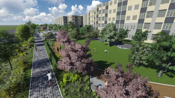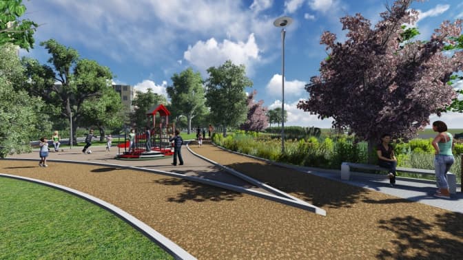 Разом з тим тут перепланували повністю головну алею, додали відпочинко-прогулянкову алею, скейт-парк, лавочки, місця для вигулу собак. Для шумоізоляції також передбачено висадження вічнозеленого живоплоту, також планується висадити близько 30 дерев вздовж вул. Б. Хмельницького.