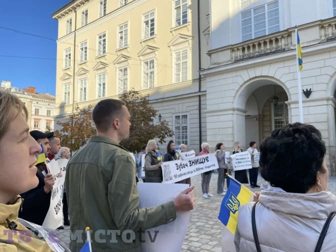 Зранку, 10 жовтня, у Львові під стіни Ратуші прийшли підприємці. Вони із плакатами пікетують міську раду з вимогою зупинити будівництво пішохідного бульвару на проспекті Чорновола та не зносити МАФи. Вони також закликають місто скеровувати кошти на ЗСУ, а не на нові будівництва, інформує Tvoemisto.