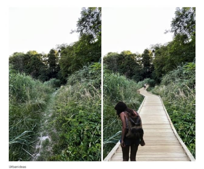 Архітекторка Ольга Криворучко розповіла, що всі заходи плануються з мінімальним втручанням та максимально екологічно. Також буде збудовано невеликий павільйон з інклюзивним туалетом, місцем для набору води та інформаційним центром.