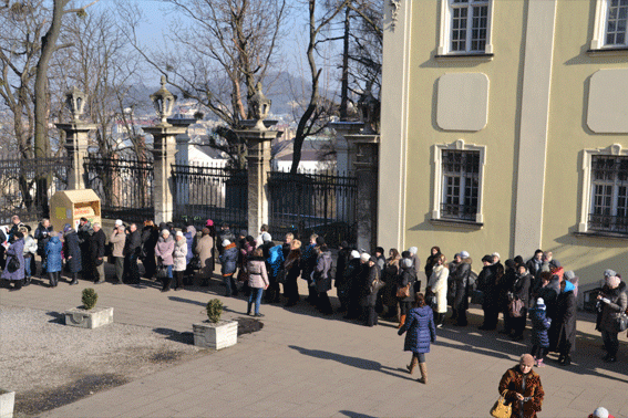 У перші дні віруючі могли потрапити у Собор Святого Юра з 7 ранку до 23 години, проте вже з 11 лютого доступ до святині зробили цілодобовим. За різними оцінками, вклонитись Нерукотворному Образу Ісуса Христа щодня приходило більше 10 тисяч вірян. Люди приїжджали з усієї України і, враховуючи кількість бажаючих отримати доступ до Образу та на уклінне прохання сімей воїнів, загиблих в АТО, поранених бійців та діток з особливими потребами, Римський апостольський престол, як виняток, дозволив продовжити перебування святині у Львові до 19 лютого.