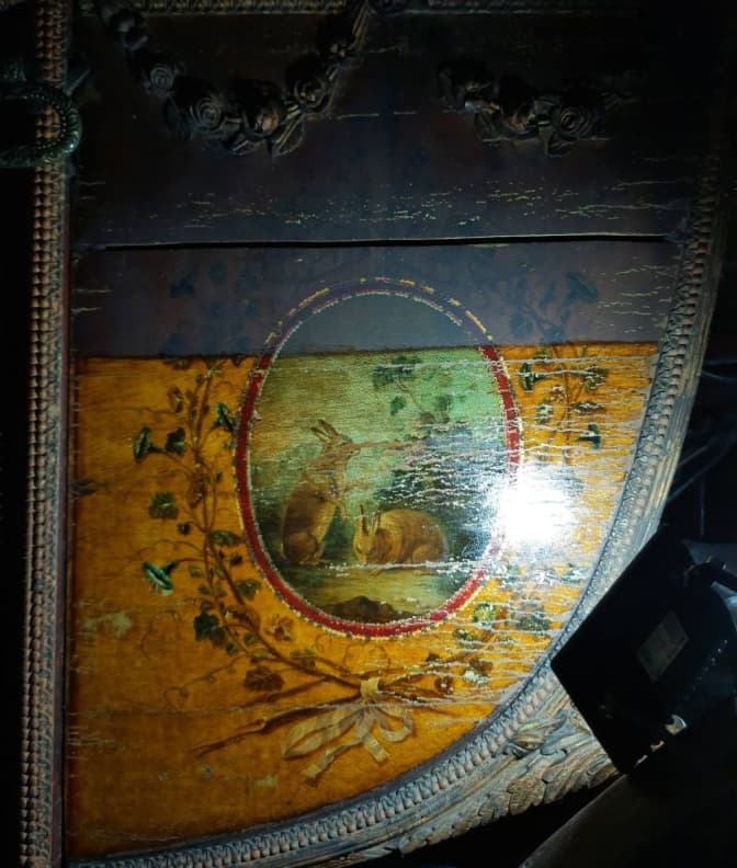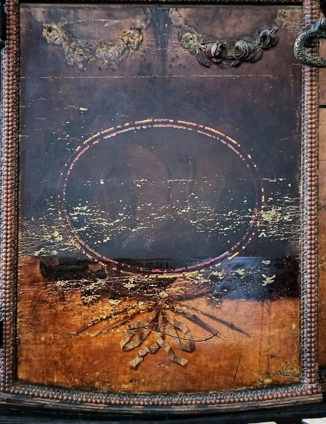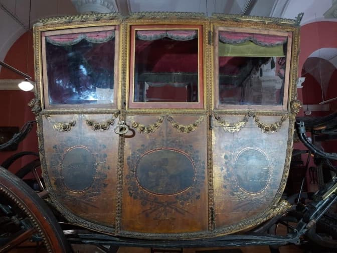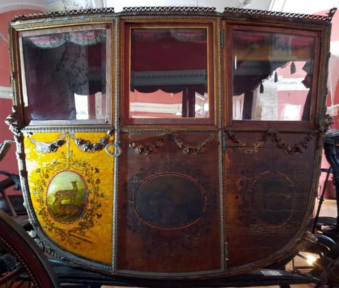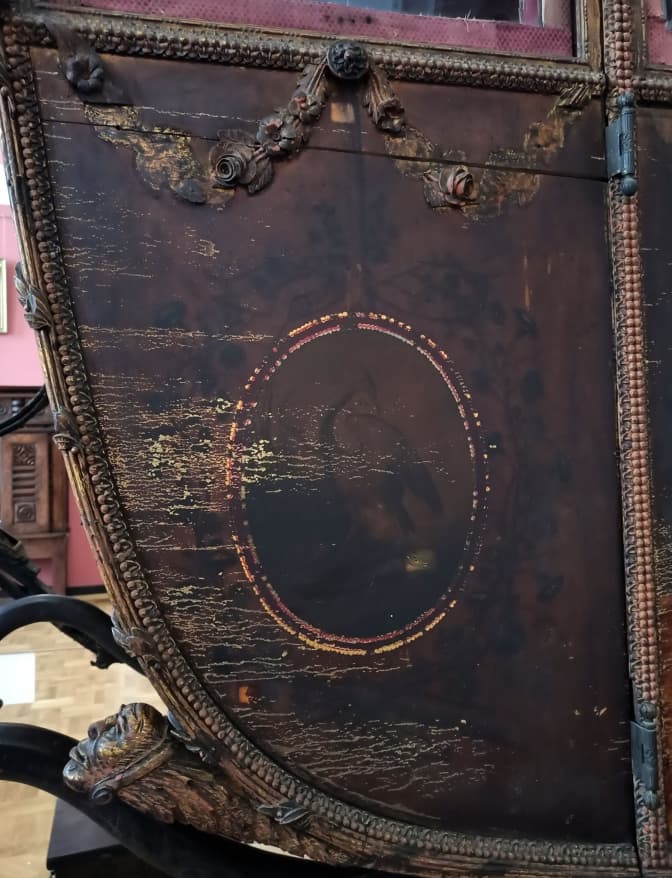 Тіло карети, чи як ще його називають – «люлька», декороване вишуканою різьбою, золоченням та розписами. Проте усе це неймовірне оздоблення за 300 років неначе вкрив темний фільтр, зробивши його невидимим.
