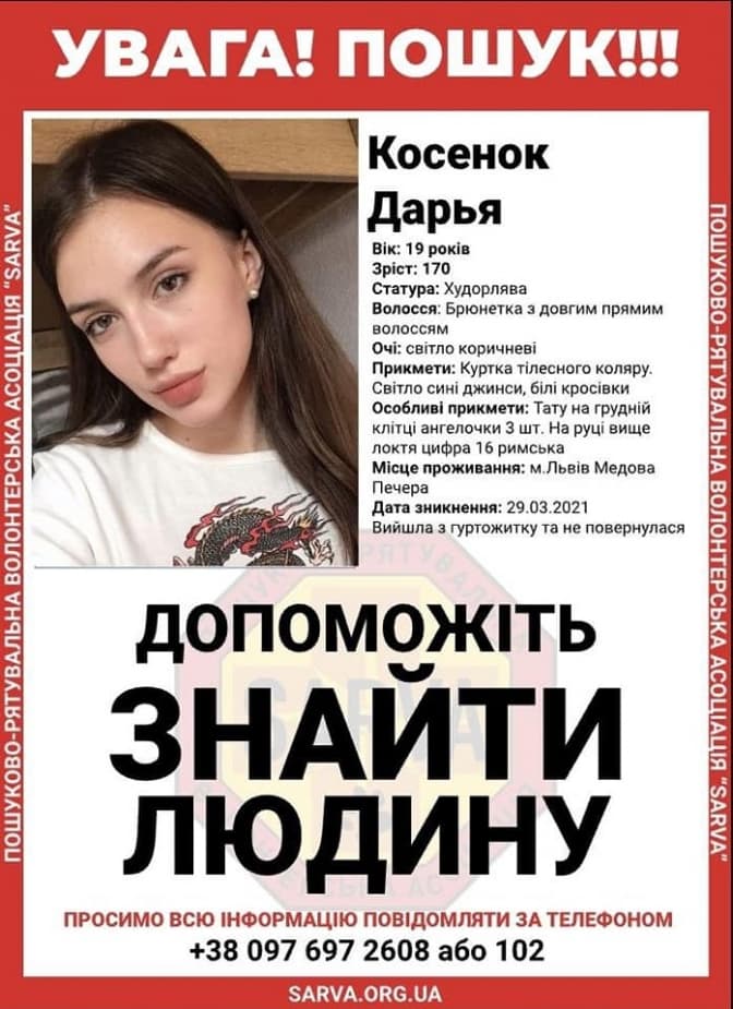 Усіх небайдужих, кому відоме місцезнаходження Дарії, просять повідомляти за номером телефону +380976972608 або 102.