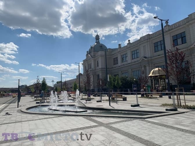 На іншій частині площі, яка буде пішохідною, будують фонтан, висаджують дерева та встановили вуличні меблі. Саме з цієї сторони курсуватиме приватний транспорт після реконструкції. Цю частину площі закрили до 1 вересня.