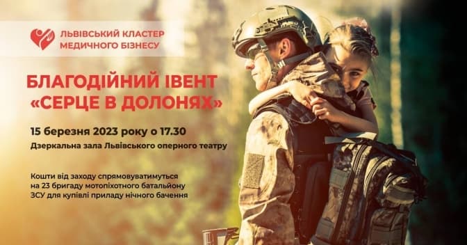 У середу, 15 березня, Львівський кластер медичного бізнесу організовує зустріч з міністром охорони здоров'я та діловий благодійний вечір для власників та керівників приватних медичних установ Львівщини. Захід триватиме з 16:00 до 21:00 у Дзеркальній залі Львівського оперного театру. Його ціль – збір коштів на покупку приладу нічного бачення для 23 мотопіхотного батальйону ЗСУ.