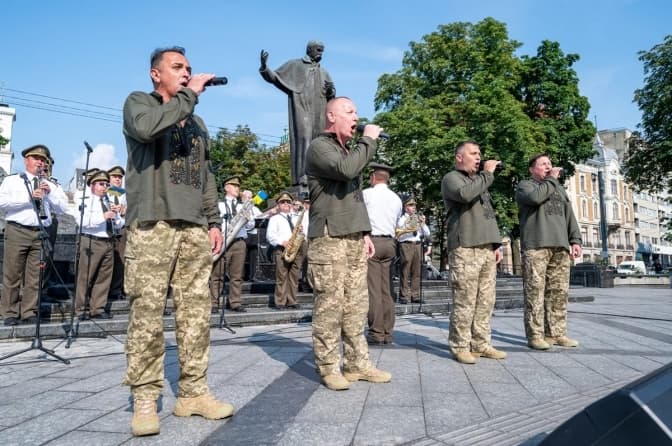 А військовий оркестр Національної академії Сухопутних військ імені гетьмана Петра Сагайдачного виконав для усіх присутніх патріотичні пісні.