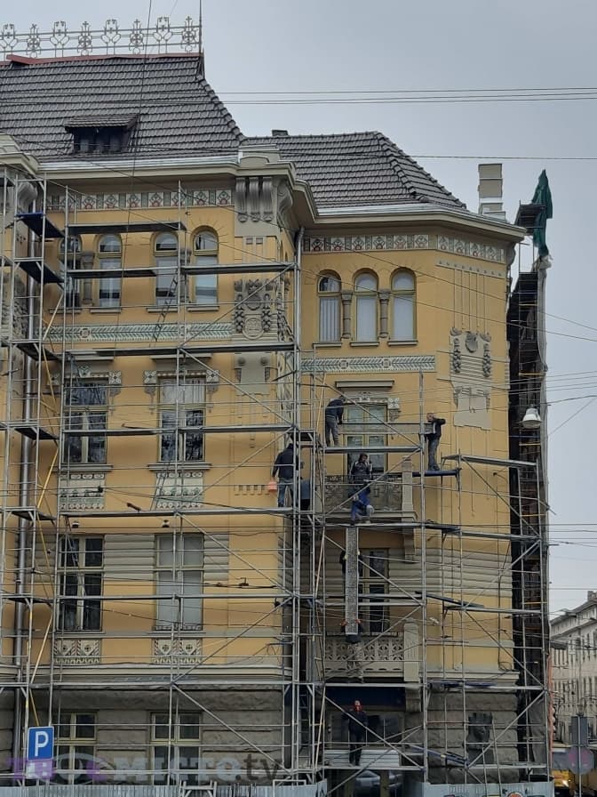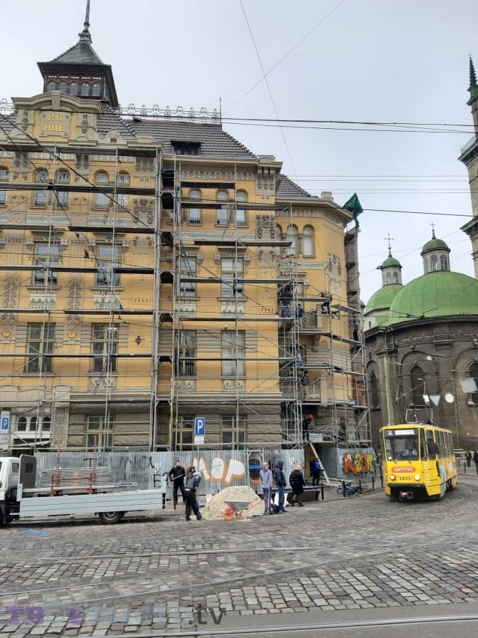 У Львові знімають риштування із відреставрованих фасадів будинку на вул. Руській, 20. Його звели понад 100 років тому. Потрібно завершити ще роботи по порталах, цоколю та фасаду із вулиці Руської.