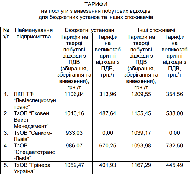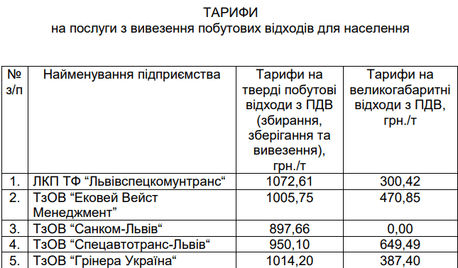 У Львові зросли тарифи на послуги з вивезення сміття. Зокрема, члени виконавчого комітету сьогодні, 27 червня, внесли зміни до рішення від 04.08.2017 «Про встановлення тарифів на послуги з вивезення побутових відходів» у частині коригування вартості пального.