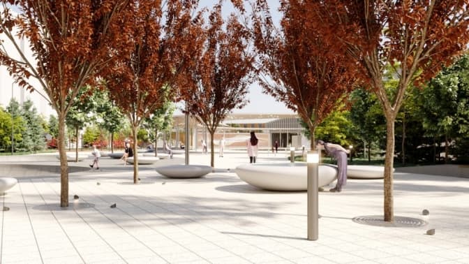 Оскільки територія ринку під час російського вторгнення та окупації згоріла вщент, на його місці вирішено облаштувати площу Свободи. Проєкт-переможець Марини Данильцевої представлений гармонійним поєднанням зелених зон із громадським простором.