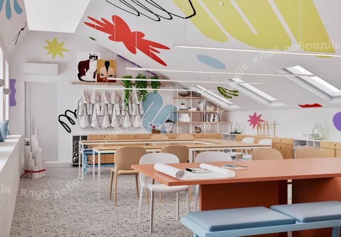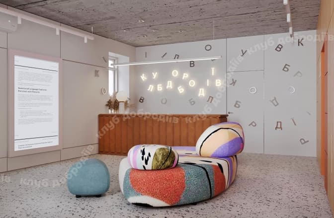 Простір має площу 240 квадратних метрів. Там на трьох поверхах розташували окремі зони для творчості, лекцій та тренінгів, а також розмов із психологом.