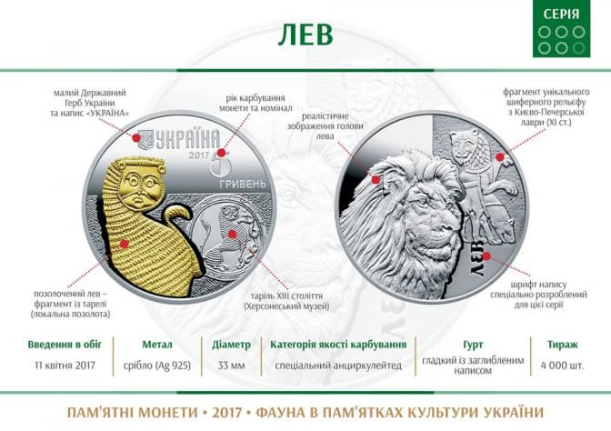 Сьогодні, 11-го квітня, в Україні в обігу з'явиться нова монета номіналом 5 гривень, присвячена леву та його втіленню на пам’ятках культури Київської Русі.