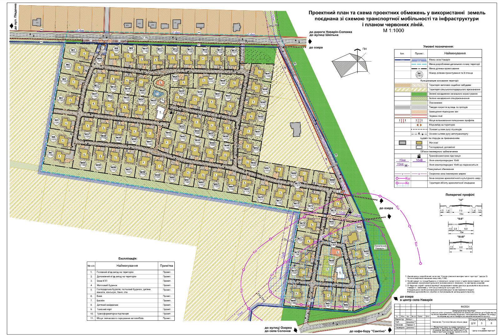 Територія, на яку розробляли ДПТ, розташована у південній частині за межами села Наварія. З північної сторони наявний попередньо розроблений квартал житлової забудови та основна частина житлового і громадського комплексу села. Гранично допустима висота будівель – 1-2 поверхи, а це орієнтовно 8-10м.