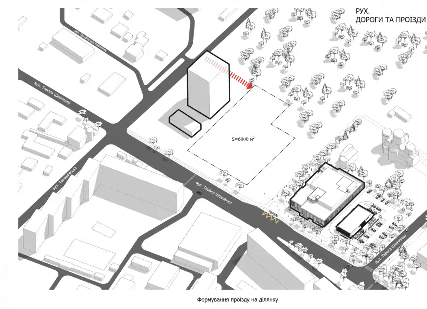 У майбутньому комплексі планують облаштувати підземний паркінг на 174 авто, внутрішній пасаж та зробити прохід до громадського простору між новою забудовою й наявною багатоповерхівкою.