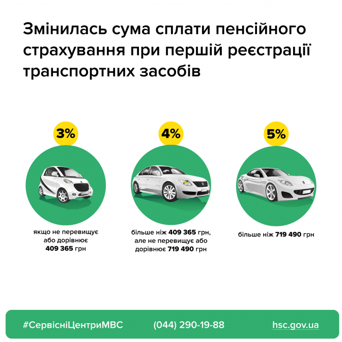 Через те, що з 1 січня 2022 року в Україні збільшили прожитковий мінімум і всі пов'язані з ним платежі, зросла вартість первинної реєстрації автомобілів. Йдеться про збір на обов'язкове державне пенсійне страхування за першої реєстрації легкових авто. Про це повідомляє пресслужба головного сервісного центру МВС.