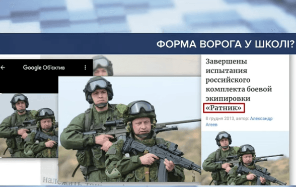 Йдеться про зображення двох військових з російською снайперською гвинтівкою в руках. Оригінал світлини був опублікований на російських сайтах, де розповідають переважно про вороже екіпірування «Ратнік» та автомат АК.