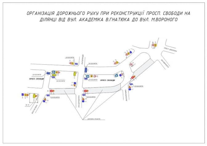 Через ремонтні роботи на проспекті Свободи (на ділянці від вулиці Гнатюка до вулиці Вороного), громадський транспорт, який курсує через центральну частину міста, змінюватиме маршрут.