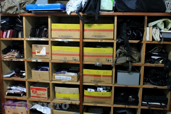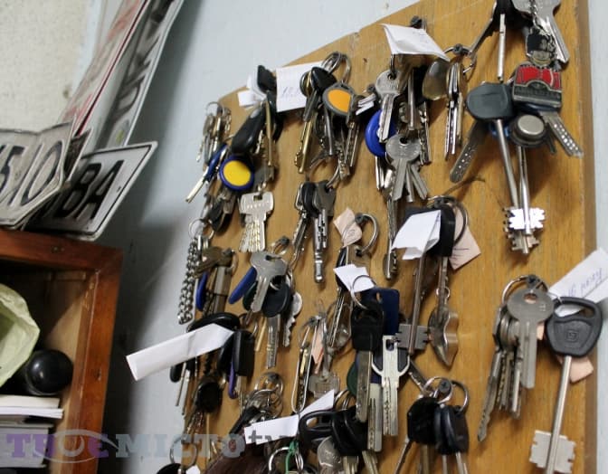 На шафі стоять номери машин. За ними – куточок, де стоїть піч, мийка і чайник. Ось і весь кабінет. Свіжі знахідки лежать на столі – по них звертаються найчастіше. Ті, що зберігаються занадто довго, теоретично має утилізувати держава. На практиці все залишається тут – роками, а може, й десятиліттями.