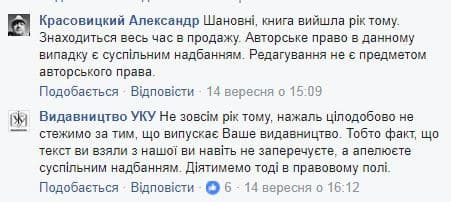 Проте відповідний допис видавництва УКУ про плагіат із офіційною вимогою він прокоментував ще 14 вересня.