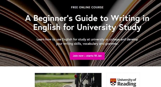 A beginner's guide to writting in English for University study - курс англійської для початківців, що хочуть навчатись в університеті за кордоном. Він допоможе оволодіти академічним стилем письма англійською та дізнатись про підходи до написання письмових робіт в університетах. Також увага приділяється граматиці.