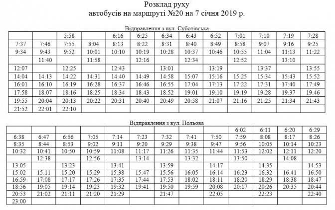 7 січня транспорт Львова курсуватиме за графіком вихідного дня. Про це повідомляє прес-служба ЛМР. Деякі маршрути комунального АТП-1 у першій половині дня їздитимуть за спецільним розкладом. Розклад решти автобусів можна переглянути за посиланням, а етектротранспорту – тут.