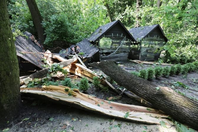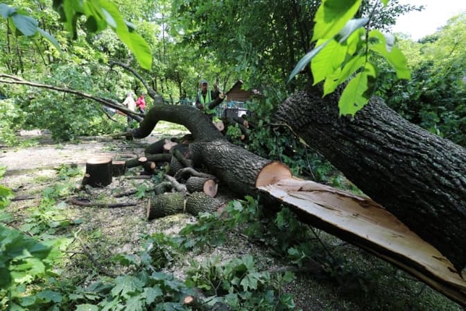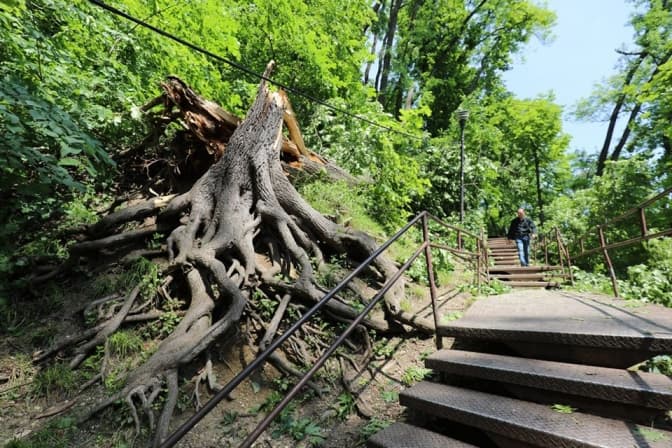 Комунальні служби сьогодні продовжать ліквідовувати наслідки буревію, зокрема у парку «Високий замок», де найбільше пошкоджених дерев.