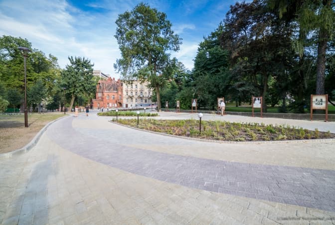 Пам’ятник Митрополиту Андрею Шептицькому запроектований на гранітному стилобаті і орієнтований на південний схід. Статуя пам'ятника (бронзове литво) – висотою 3,6 м, загальна висота композиції з базисною частиною в камені – до 5,8 м, стилобат пам'ятника – включення елементів граніту полірованого, коричнево-охристого відтінків, замощення площі, алей – комбіноване: природній камінь, плити ФЕМ сіро-охристі, коричневі відтінки.