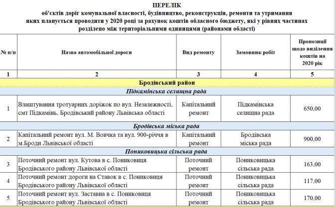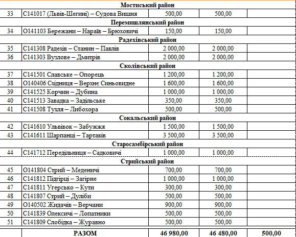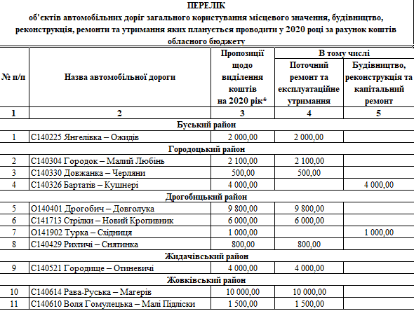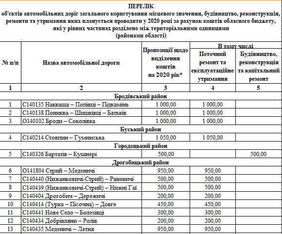 Львівська обласна рада оприлюднила у розрізі районів та міст обласного значення переліки доріг, які планують ремонтувати у 2020 році. На ремонтні роботи із обласного бюджету передбачили 322,5 млн грн.